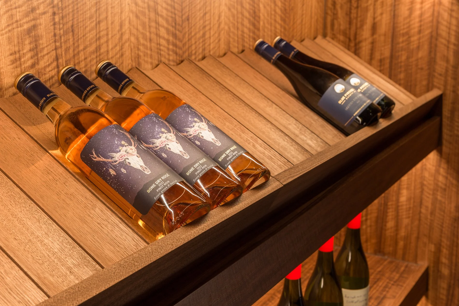 The artistry of wine presentation at Vinesmith is unparalleled. Precision-crafted shelving, free from vertical interruptions, offers a seamless display that invites exploration. Slanted shelves lined with Porta Contour cradle each bottle securely, ensuring perfect alignment and effortless visibility. Reinforced with integrated steel for durability, the shelving effortlessly supports a fully stocked collection, while dimmable LED lighting highlights the wines with subtle elegance.